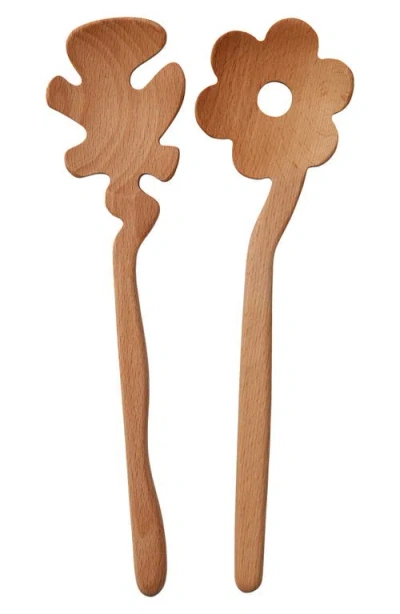 Serving Friends Flowers Wooden Spoon Set In Brown