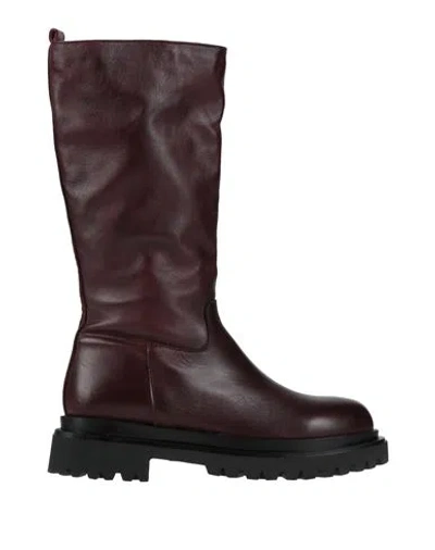 Woman Boot Burgundy Size 5 Calfskin In Brown