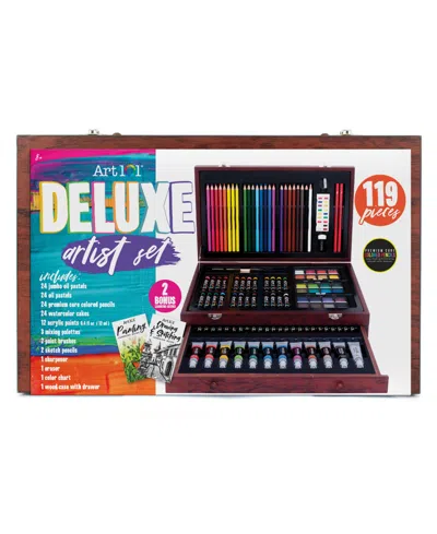 Deluxe Art Set In A Wood Organizer Case, 119 Pieces In Brown