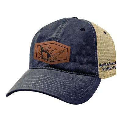 Artisans Pheasants Forever Showing Off Etched Patch Duet Vw Trucker Hat In Blue
