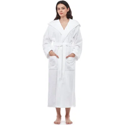 Womens Gots Certified Oganic Cotton Long Hooded Robe In White