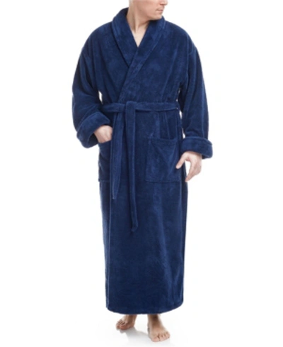 Men's Shawl Collar Full Ankle Length Fleece Bathrobe In Navy