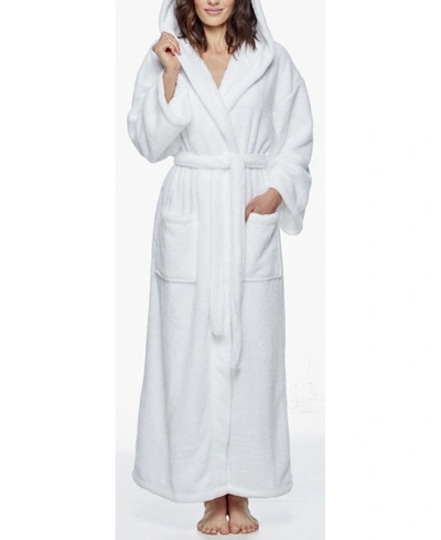 Women's Hooded Full Ankle Length Premium Fleece Bathrobe In White