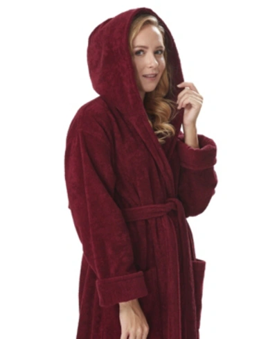 Women's Hooded Full Length Gots Certified Organic Turkish Cotton Bathrobe In Burgundy