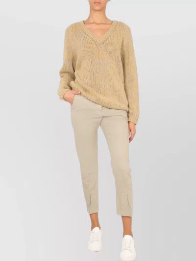 Cropped Trousers With Pockets And Belt Loops In Neutral