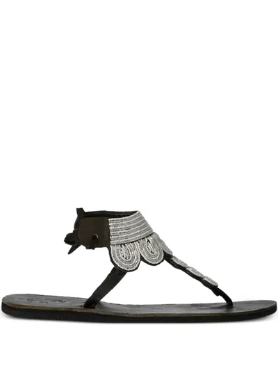 Woman Toe Strap Sandals Dark Brown Size 8 Soft Leather