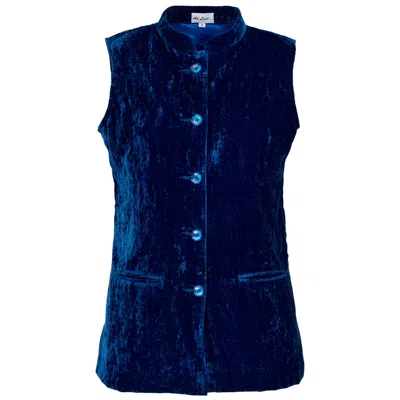 Women's Short Silk Velvet Waistcoat In Sapphire Blue