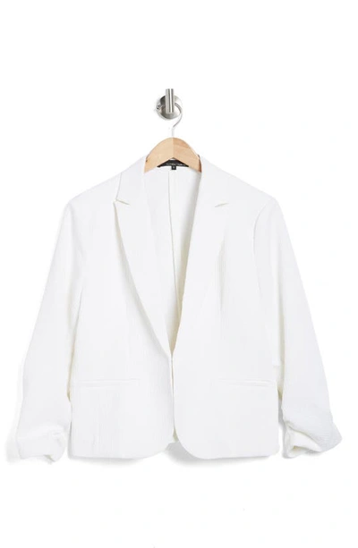 Ruched Sleeve Jacquard Blazer In White