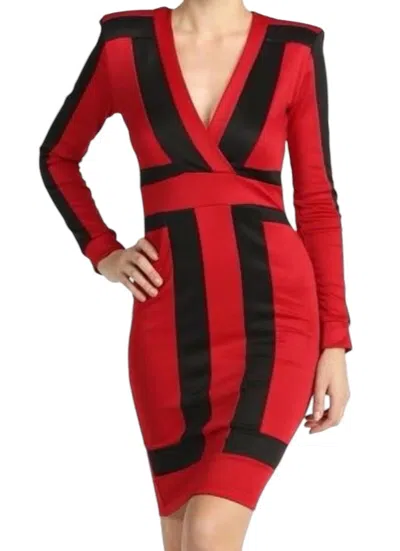 Long Sleeve Dress In Red & Black In Multi