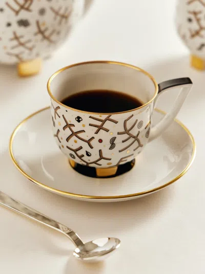 Cabaret Hand-painted Porcelain Coffee Cup And Saucer Abask Luxury Gift In Gold