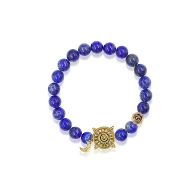 Women's Blue / Gold Three Charms Solar Meridian Gold Whitegold Plated Sundial And The Sun Coin Lapis In Multi