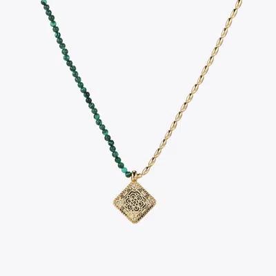 Women's Gold / Green Three Charms Venus Bound The Endless Love Knot Crystal Beaded Necklace Malachit In Multi