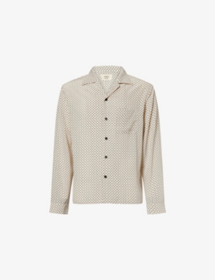 Mens Printed Open-collar Woven Shirt In White