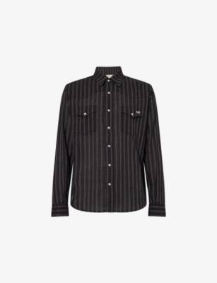 Mens Western Striped Cotton Shirt In Black