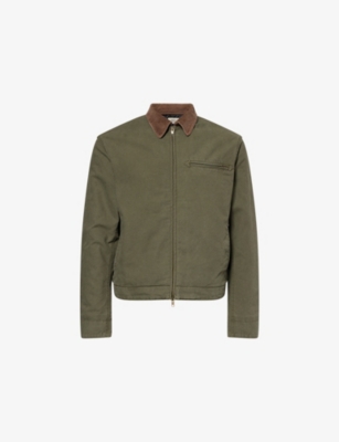 Mens Corduroy-collar Cotton-canvas Work Jacket In Green