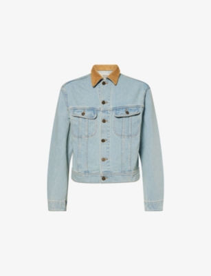 Mens Sherpa Topstitch-detailing Denim Jacket In Blue