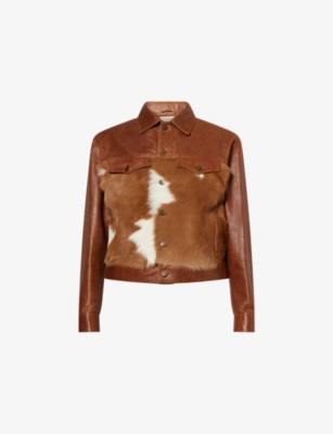 Mens Western Trucker Leather Jacket In Brown