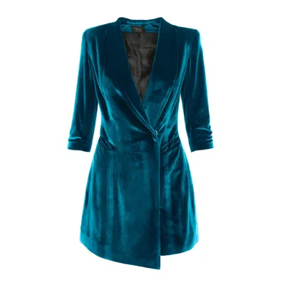 Women's Blue Asymmetric Velvet Blazer Dress - Turquoise