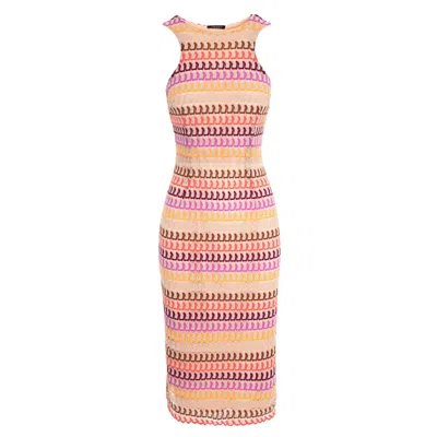 Women's Pink / Purple Bodycon Midi Dress With Leg Slit - Pink In Pink/purple