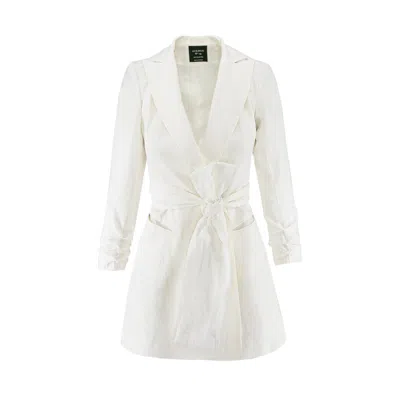 Women's Linen Blazer Dress With Bow - White
