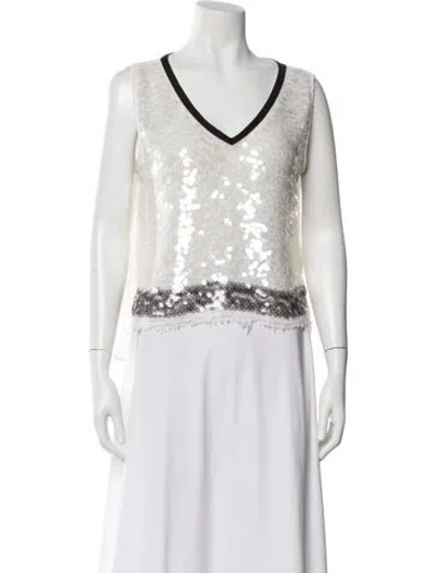 Pre-owned Printed V-neck Top In White