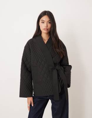 Quilted Clean Wrap Tie Side Jacket In Black