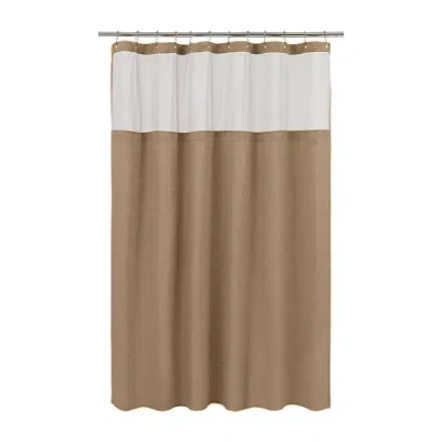 Polyester Waffle Snap In Liner Shower Curtain Set In Brown