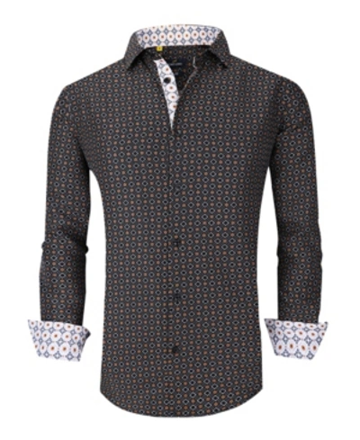 Men's Business Geometric Long Sleeve Button Down Shirt In Black