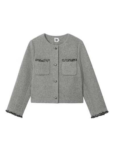 Pocket-trimmed Embellished-cuff Jacket In Gray