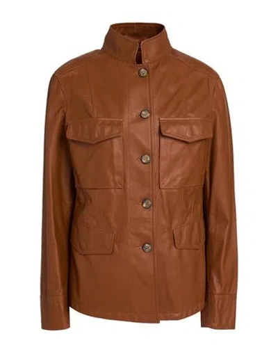 Woman Jacket Tan Size 4 Leather In Brown