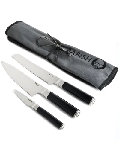 4pc High-carbon Stainless Steel Knife Set With Knife Roll In Black