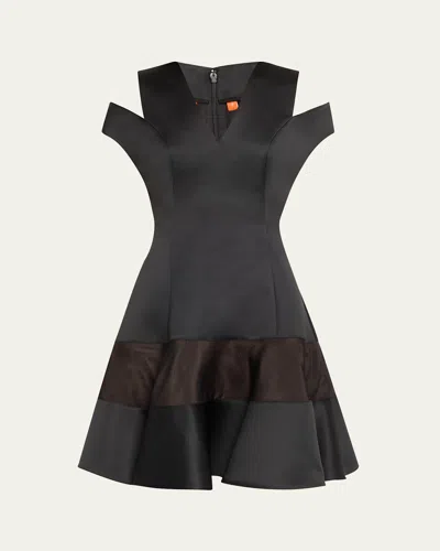 Shoulder Cut Out Flounce Satin Organza Dress In Black