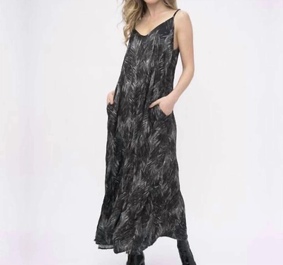 Ruffle Leaf Print Maxi Dress In Black & White In Multi
