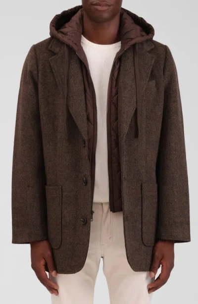 Wool Blend Blazer With Quilted Hooded Bib In Brown