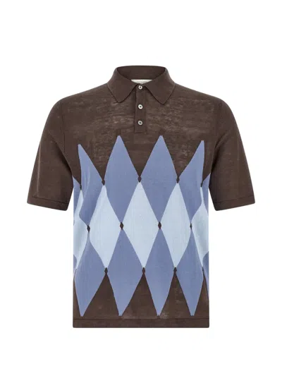 Argyle-pattern Short-sleeve Polo Shirt In Brown