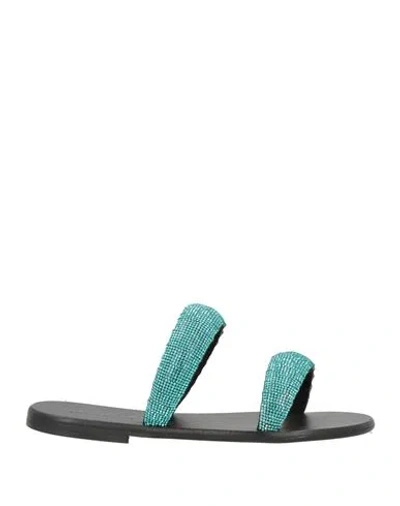 Woman Sandals Turquoise Size 6 Textile Fibers In Blue