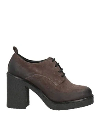 Woman Lace-up Shoes Charcoal Size 8 Leather In Gray