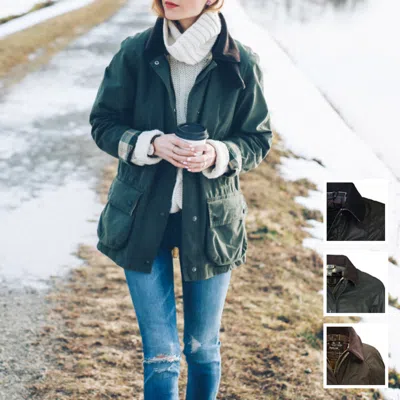 Pre-owned Classic Beadnell Wax Jacket 'olive' | Green | Women's Size 12