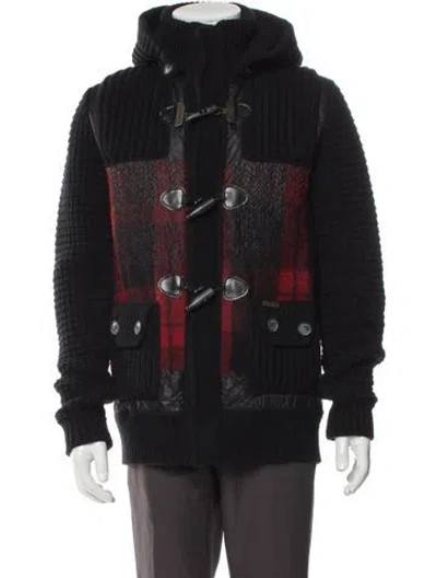 Pre-owned Wool Plaid Print Puffer Coat In Black