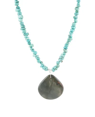 Pueblo Blue Turquoise Magnesite And Jasper Sterling Silver Teardrop Pendant Necklace In Genuine Magnesite,jasper
