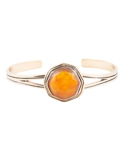 Luster Genuine Yellow Agate Rectangle Cuff Bracelet