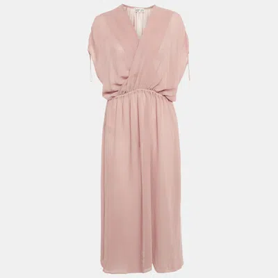Pre-owned Pink Satin Sleeve Detail Belted Alchemilla Maxi Dress Xl