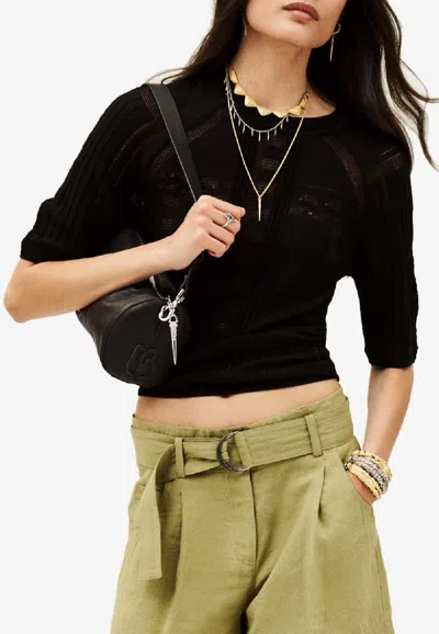 Ba & Sh Oxane Pleated Wrap Cropped Top In Black Polyester