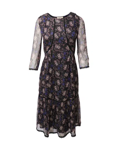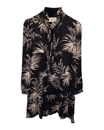 Ba & Sh Waist Tie Silver-trimmed Floral Dress In Black Viscose In Multi
