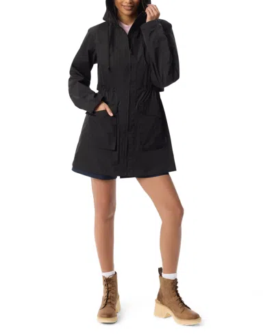 Women's Rain Parka Long Sleeves Jacket In Black