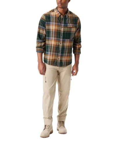 Outdoor Flannel Shirt Men's Med Brown Plaid Long Sleeve Button Up Fts162