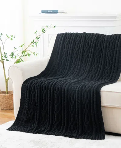 Lifestyle Cable Knit Chenille Throw, 51" X 67" In Black