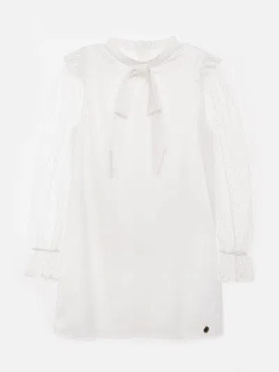 Babies' Girls Flocked Spot Sleeve Dress In White