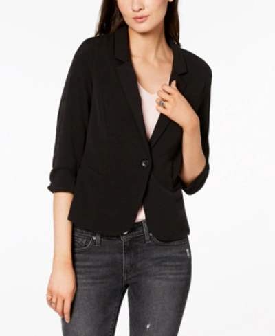 Juniors' Ruched 3/4-sleeve Blazer In Black