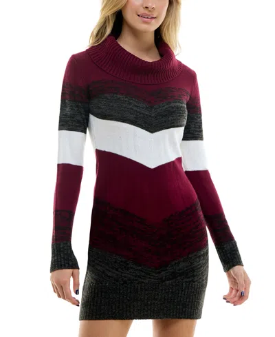 Juniors' 3/4-sleeve Crewneck Detachable Scarf Sweater Dress In Burgundy